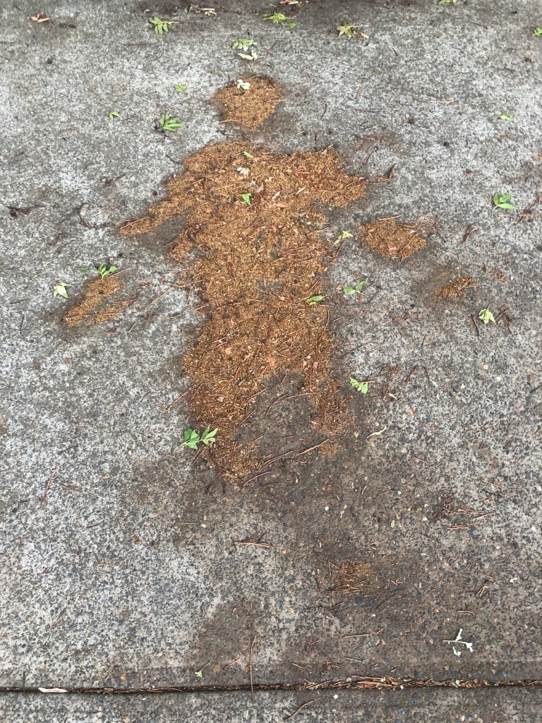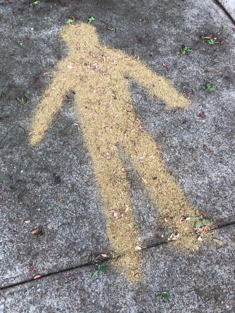 During this time, I began experiencing a perceptual shift from “silhouette” to “man”; I even referred to them as male in my inner monologue. Like Mendieta’s female works, my pieces were gendered, and now I can’t think of them as anything else. Except when a big storm blows down trees that are cut up by the State Emergency Service and I draw genderless aliens in the sawdust.