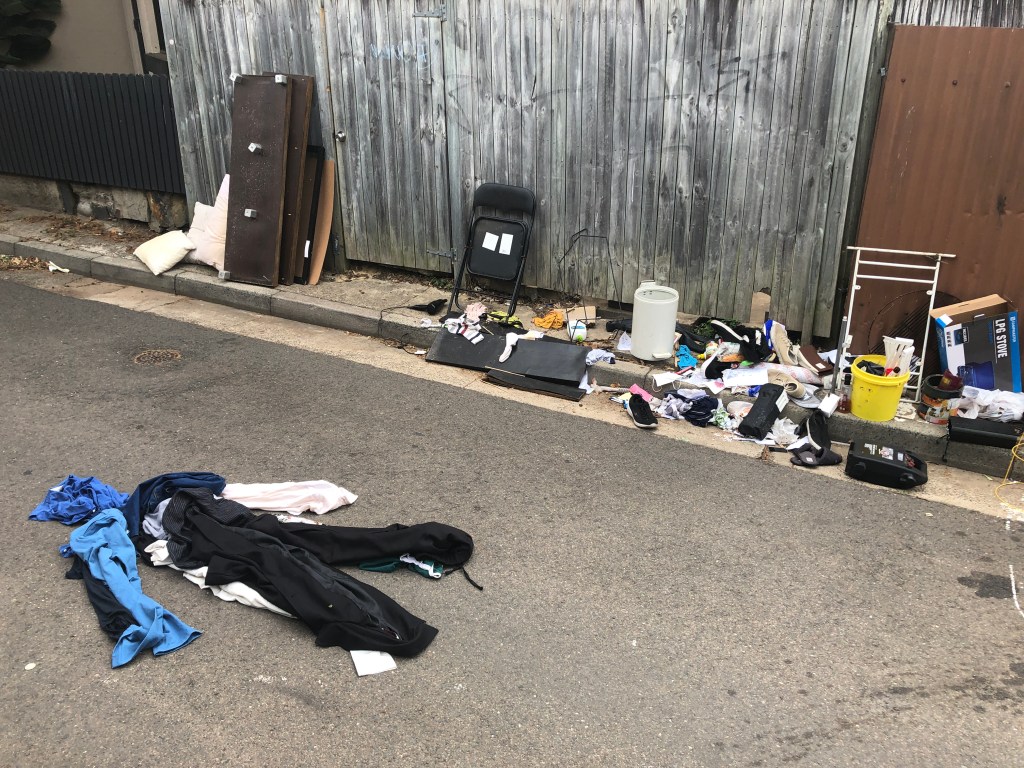 And then there were these clothes put out for collection that someone had rummaged through. After I’d finished the intervention, I put them back on the pile because: I’m tidy, I don’t have to leave them where I placed them, and I can destroy the intervention if I want to. It was interesting to use shirts to create the torso and arms and trousers for the legs. If there’d been a hat for the head, I’d’ve been giggling all the way to the coffee shop.