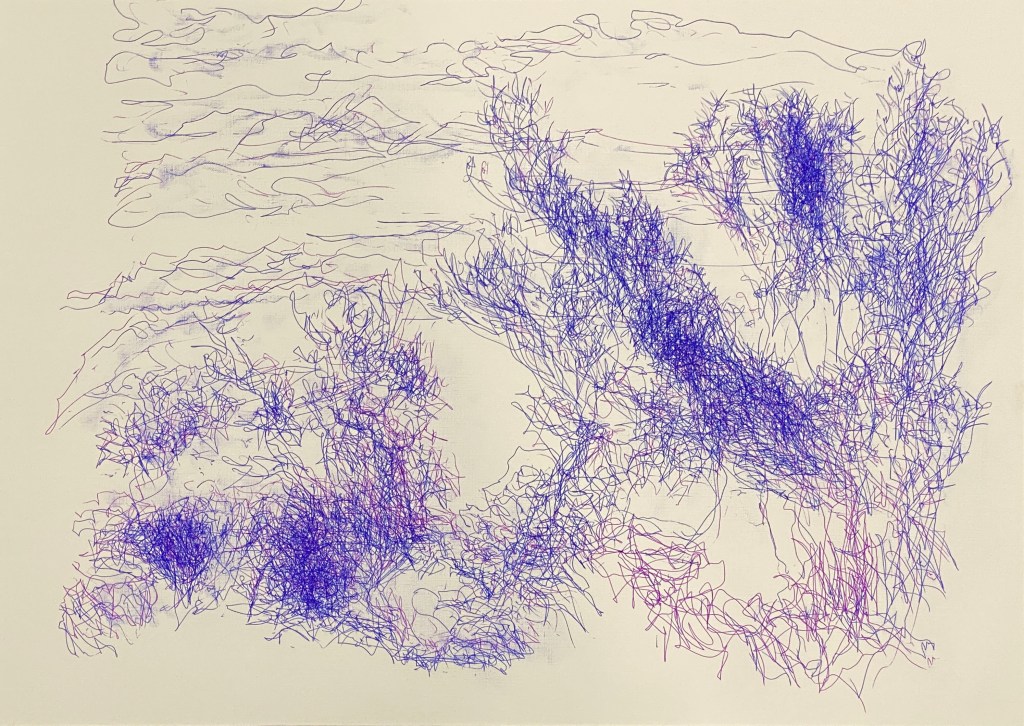 “Long drawing” is an interference technique I developed in Drawing 3 to stop myself from being precious with my mark-making. I tend to agonise over the way that what goes into my eyes doesn’t come out of my hand.