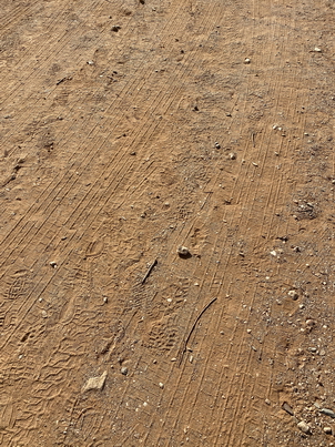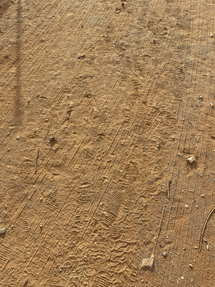 I chose the driveway because it was on the path between Cottage 1 (the assisted living annexe) and the kitchen; I knew that it would be affected by car and foot traffic. Not more than half an hour later, Grant drove us over it on the way to Leopard Tree Hill, beginning the inevitable process of erasure.