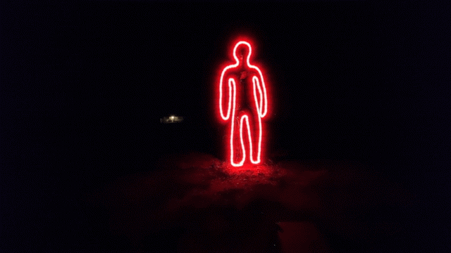 These figures are the most ephemeral I have made, disappearing from existence at the literal speed of light. The app on my phone allowed me to layer subsequent exposures onto the original image, which I animated as a gif.