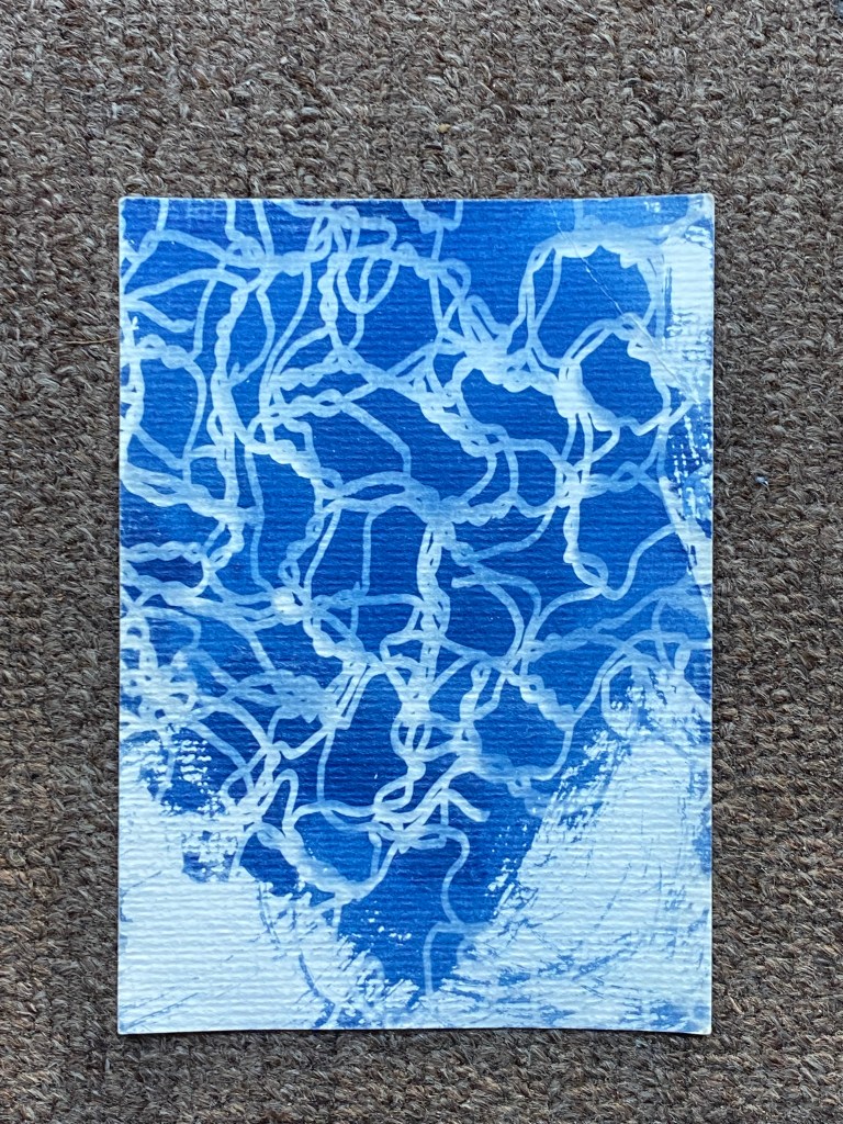 Although I captured most of my landscapes with cameras, eventually I had enough free time to do some painting in a style I’ve been developing during 2021. I have named it the Tote Bag series because it was inspired by a bag I painted on O-Day at the Paddington campus of UNSW. Initially the works were purely abstract creations of my imagination but I eventually decided to challenge myself by painting landscapes. Each abstraction is applied to a found canvas, with so little information that it’s not possible to separate the imagined from the representational without context generated by the titles.